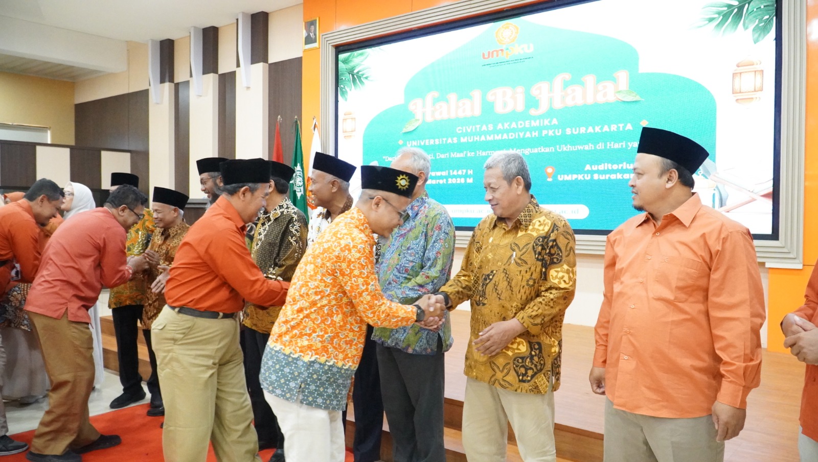 Surakarta – Universitas Muhammadiyah PKU (UM PKU) Surakarta menggelar kegiatan Halal Bihalal yang berlangsung di Auditorium Lantai 5 kampus setempat. Kegiatan ini diikuti oleh seluruh dosen, civitas akademika, serta perwakilan mahasiswa sebagai momentum mempererat silaturahmi dan kebersamaan pasca Hari Raya Idulfitri.