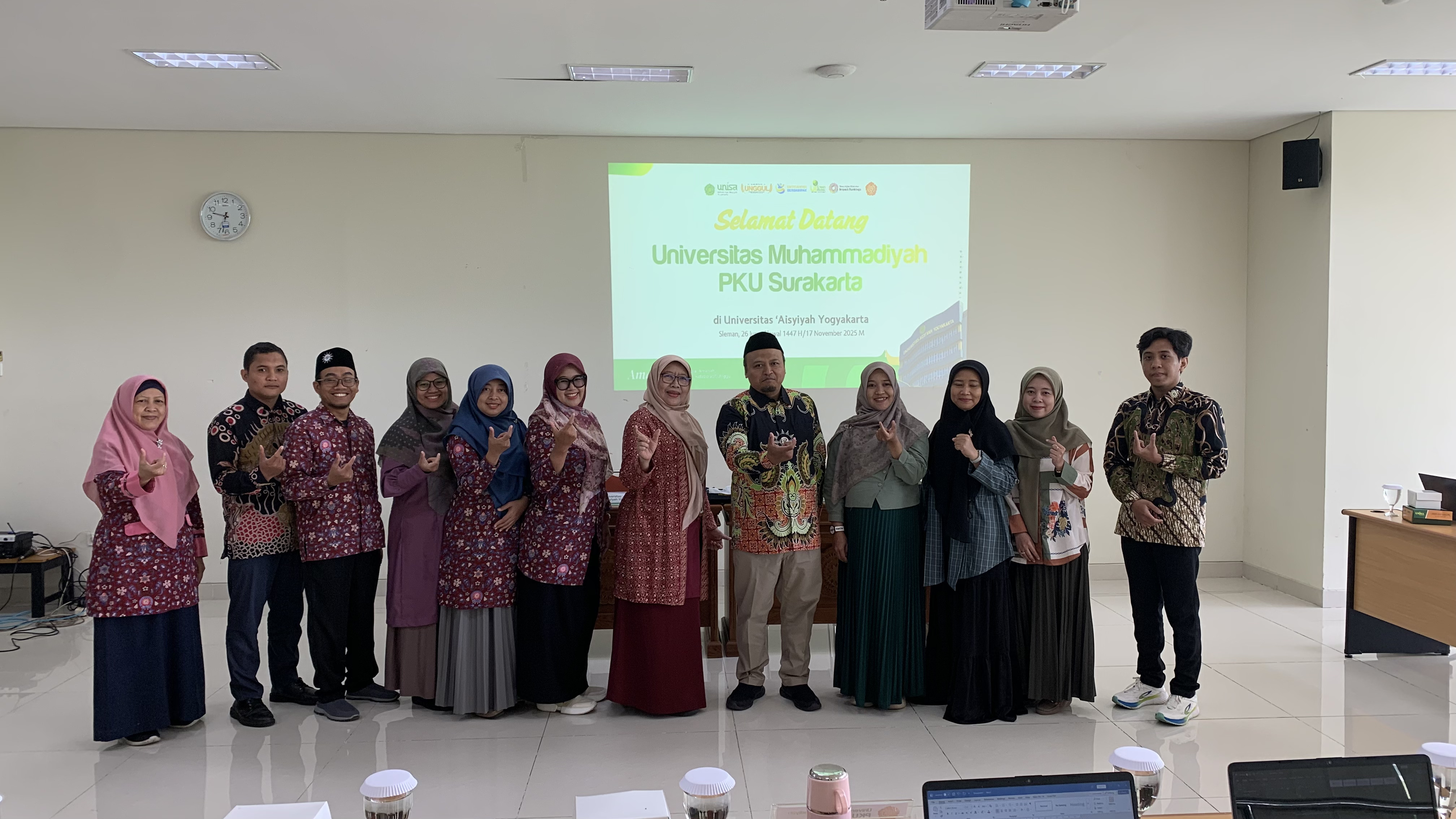 SURAKARTA, 18 November 2025 – Universitas Muhammadiyah PKU Surakarta (UMPku) melakukan kunjungan studi banding ke Universitas 'Aisyiyah Yogyakarta (UNISA Yogyakarta) pada hari Senin, 17 November 2025. Kunjungan ini dilaksanakan dalam rangka penguatan program Kemahasiswaan dan Al-Islam Kemuhammadiyahan (AIK).